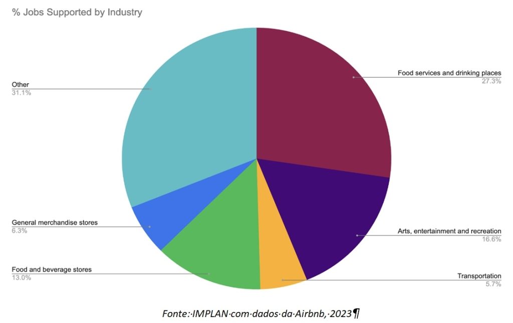Os restaurantes destacam-se como um dos setores mais beneficiados, recebendo cerca de 984 milhões de euros dos visitantes da Airbnb. Além disso, eventos e atividades recreativas representaram 14% das despesas dos hóspedes e 17% dos empregos apoiados, demonstrando o papel da Airbnb em apoiar a economia local durante grandes eventos.