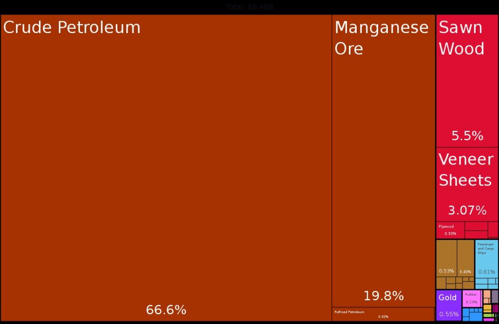 Com uma superfície de 267 mil Km2 e uma população de 2 milhões habitantes, o Gabão, é o quarto maior produtor de petróleo do continente africano e a sua economia é fortemente dominada pelas receitas do petróleo.