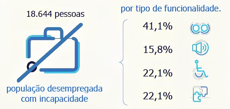 O perfil sociodemográfico revela que, em 2021, havia 1,09 milhões de pessoas com algum tipo de incapacidade em Portugal, representando 10,9% da população com 5 anos ou mais. As incapacidades mais comuns são relacionadas com mobilidade, seguidas por problemas visuais e cognitivos. A maioria das pessoas com incapacidade são mulheres e idosos, com um nível de escolaridade significativamente mais baixo em comparação com a população em geral, sendo que 21,5% não possuem qualquer nível de escolaridade.